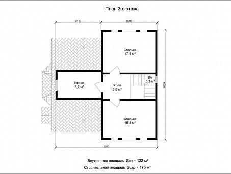 На втором этаже находиться две просторных спальни и ванная комната. |
