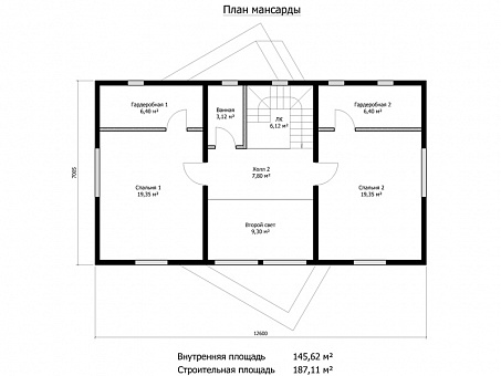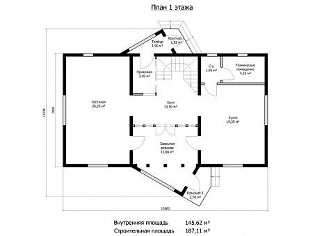Общая строительная площадь 187 м2